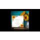 A white background color. Decorated with sunflowers, eucalyptus greenery, golden foliage and faux gold glitter dust. Add a name, age and a date.