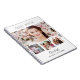 Create your own unique photo collage. Use four, 4 of your favorite photo. Personalize and a name and age/dates. A white background, black text.