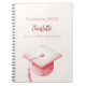 A beige, cream background color. Decorated with a large pink cap. Personalize and add your name, year, school name.
