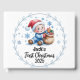 Capture all the holiday memories of your baby’s first Christmas with this charming guestbook. Features a sweet baby next to presents in a blue-themed design. The top is editable to add the baby’s name, making it a perfect keepsake for family and friends to leave messages and wishes.