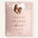 A stylish rose gold background with confetti. Personalize and add a name and a date. Add a photo to the heart shaped frame. Can be used as a party guest book, for planning the party or as party favors.