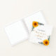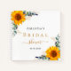 A white background color. Decorated with sunflowers, eucalyptus greenery and golden foliage. Add a name and a date.