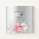 A faux silver looking background with pink and white florals, silver foliage and a golden cross. Personalize and add a name, and date.