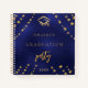 A stylish navy blue background with golden stars and a cap. The blue color is uneven. Personalize and add a name and year. Can be used as guest book or planning the party.