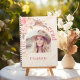 A golden marble background, decorated with boho style pampas grass and rose gold and blush pink florals. Personalize and add a photo inside the arch frame, name.