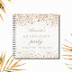 A stylish white background with dark faux gold glitter dust. Personalize and add a name and the date. Can be used as guest book or planning the party.