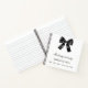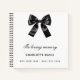 A guest book for a memorial service or funeral. An elegant white background, decorated with a black bow. Personalize and add a name and dates.