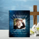 A guest book for a memorial service or funeral. A blue sky as background. White light rays behind the photo. Personalize and add a photo, name and dates. White letters.