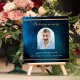 A guest book for a memorial service or funeral. A dark blue sky as background, a faux gold frame on the front. Personalize and add a photo inside the arch frame, name and dates.
