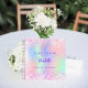 A guest book for a Sweet 16, 16th birthday party. A trendy holographic colored background in pink, purple, mint green. Decorated with confetti in pink. Personalize and add a name, the name is written with a girly modern hand lettered style script