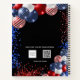 Black background. Decorated with patriotic colored balloons in red blue and white. Blue and red sparkles. Add your name, age/text