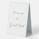 This table tent sign is the perfect size for our tables and easy to read. I also like the material it is made with and no worries about it falling or sliding. Just perfect! Everything about this card is perfect. I like that it says what we want on the front and on the back we were able to personalize a message for our guests.