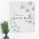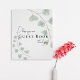 Invite your guests to share their memories with this elegant wedding guest book sign, featuring soft watercolor eucalyptus leaves and a refined minimalist layout. The graceful script paired with classic lettering creates a timeless and romantic look, perfectly suited for a variety of wedding styles.