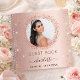 A guest book for a feminine and glamorous Sweet 16, 16th birthday party. A stylish rose gold, blush background with a rose gold photo frame. Add your name, age, date and a photo.