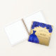 For a Sweet 16, 16th birthday party. A faux gold background with faux glitter,sparkles, a royal blue dress and blue roses, florals. The name is written with a modern hand lettered style script with swashes. Personalize and add a name and date.