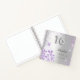 A faux silver looking background decorated with purple, violet faux glitter dust and a dress. Personalize and add a name and date. Number 16 is written with a balloon style script.
