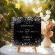 A stylish black background with faux silver glitter dust. Personalize and add your names and wedding date. Mr & mrs written with a heart. White letters.