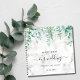 Marble print as background. Decorated with watercolored eucalyptus greenery, woodland ferns. Add your names, the wedding date.