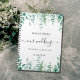 A white background. Decorated with watercolored eucalyptus greenery, woodland ferns. Add your names, the wedding date.