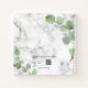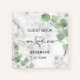 Marble print as background color. Decorated with elegant eucalyptus greenery sprigs. Mr and Mrs with a heart. Add your names and a date.