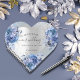 Faux silver looking background decorated with navy blue and light blue florals, flowers, and faux glitter, sparkles. Personalize and your names and the wedding date.