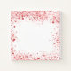 A stylish white background with red faux glitter dust. Personalize and add your names and wedding date.