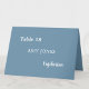Guest Name Meal Choice Dusty Blue Place Card featuring stylish white text on a dusty blue background. Please use the online personalization template to personalize each place card individually before adding the card to the cart, to show the table number for the particular table where the guest is to be sitting, the name of the guest and the meal choice (or dietary restriction) for the guest. (Repeat the personalization process for each card you wish to purchase, adding the card to the cart individually each time). This printed place card will arrive flat and so will need folding in half before use. (The size before folding is approximately 5" height by 3.5" width, intended to be folded so approximately 2.5" by 3.5" after folding). Once the printed card is folded, the same wording will show on both sides (so as to be visible from both sides of a table). A neatly-personalized place card for a stylish wedding or other special occasion.