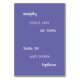 Guest Name Meal Choice Lavender Place Card featuring stylish white text on a lovely plain lavender color background. Please use the online personalization template to personalize each place card individually before adding the card to the cart, to show the table number for the particular table where the guest is to be sitting, the name of the guest and the meal choice (or dietary restriction) for the guest. (Repeat the personalization process for each card you wish to purchase, adding the card to the cart individually each time). This printed place card will arrive flat and so will need folding in half before use. (The size before folding is approximately 5" height by 3.5" width, intended to be folded so approximately 2.5" by 3.5" after folding). Once the printed card is folded, the same wording will show on both sides (so as to be visible from both sides of a table). A neatly-personalized place card for a stylish wedding or other special occasion.