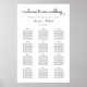 This minimal vertical black and white seating chart is perfect for an elegant and classic wedding. You can change the background color. Just click the customize further link, shown under the text personalization area on the right, and choose your custom color background. This poster shows the organization of the guests sitting by the tables and includes enough room for up to about 90-100 guests. Make room for more (or less) guests by clicking the "customize" button and decrease or increase the size of the font.