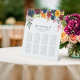 Guests seating chart with elegant wedding theme, multicolor, watercolor, floral top header in bright colors with a white base underneath. Templates made for you.