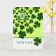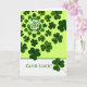 Guid Luck paper greeting card. Guid Luck = Good Luck in Scots language. Inside text: Guid luck go wi' ye aye = Good luck go with you always. Good Luck greeting card with a shamrock corsage. Green shamrocks with white clover flower. Art, image, and verse copyright © Shoaff Ballanger Studios, 2021.