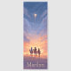 Celebrate the awe and wonder of the Christmas story with this stunning depiction of the Three Wise Men traveling across a peaceful desert under a glowing star. Painted in soft purples, golds, and blues, the evening sky opens to reveal a celestial light guiding their path. With space to personalize with a name, this design is a meaningful gift for those who treasure the spiritual journey of the season.