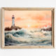 Embrace the coastal charm of this watercolor painting, and allow its dynamic presence to infuse your space with the timeless allure of a steadfast sentinel. Illuminate your surroundings with the breathtaking beauty of a lighthouse standing tall amidst the crashing waves, capturing the essence of a scene that celebrates the enduring connection between land and sea.
