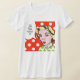 This fun t-shirt design features a pop art drawing of a woman wearing green and white polka dots with a speech bubble that says, "Pack your bags... We're going on a guilt trip!" Her raised eyebrows, perfectly coifed hair and ruby red lips give her an authoritative air. The woman and thought bubble are on a red and white polka dot background. This is the perfect shirt for moms or people who have moms.