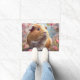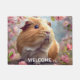 This doormat features a charming golden-haired guinea pig sitting beneath a canopy of blooming cherry blossoms. A serene breeze gently ruffles the guinea pig's lustrous, golden-brown fur and the delicate petals from the pink cherry blossoms have fallen around the guinea pig. Above, the branches laden with flowers arch gracefully, framing the guinea pig and giving the scene a natural, sheltered feel. The light seems to filter through the blossoms, casting a warm, dappled glow on the guinea pig, highlighting its gentle form amidst the signs of a blooming spring. This guinea pig doormat is sure to make every visitor smile. generativecontent