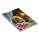 A charming notebook cover featuring a sweet guinea pig nestled among colorful fruits—grapes, strawberries, citrus, and more—on a checkered cloth. The warm, painterly detail gives it the look of a classic still life with a playful twist. Perfect for animal lovers, artists, and anyone who enjoys a touch of whimsy in their stationery.