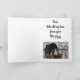 Adorable photo of a guinea pig is featured on this Father's Day card. Front of card reads, "Happy Father's Day" and inside of card reads, "Dad, with all my love, from your little piggy". Inside of card has a photo of a guinea pig in a baby carriage too. A cute card to give Dad on his special day!