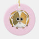 A cutewhite and tortoiseshell patterned guinea pig picture, on a pale pink background color.