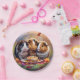 Paper plates featuring guinea pigs that are perfect for any birthday party. This enchanting image captures the essence of a whimsical celebration as three guinea pigs huddle together in sweet camaraderie around a birthday cake. Set against a soft, diffused backdrop, leaves gently fall around them. The cake, aglow with a handful of flickering candles, sits on a flower-adorned plate. generativecontent