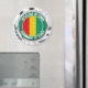 Well Designed High Quality Magnet. Colors are Vibrant Clear Excellent good size Diameter Circumference Fonts Red Folio Bold Clover Green Outline Puffy White Interior Image