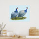 Slate guineas show no polka dots at all on their feathers, being a soft bluish gray, darkening toward the neck and head.