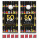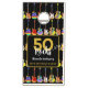 Set the atmosphere for the perfect 50 rocks 50th birthday party with this cool funky colorful guitar themed fiftieth party backyard game with modern gold typography to personalize with the birthday man or womens name on a black background. Ideal for a rock and roll fun party with live music or for guitarists, musicians and music lovers. Unique original artwork by artist Catherine Sweetman includes electric guitars, semi acoustic guitars and acoustic guitars in bright colorful hues more matching party supplies available in the 50 rocks 50th birthday party collection