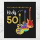 Personalized Rocks 50 50th birthday party wine labels with three cool watercolor guitar designs on black background. An electric guitar with Fire flame pattern and red pick guard, a multicolored semi acoustic guitar and a psychedelic classic acoustic guitar art illustration with personalized black and gold modern cool typography. This easy to use template creates the perfect party decor to celebrate fifty in rock n roll style and is ideal for a guitarist, musician and music lovers. Any guitar player will tell you that you can never have too many guitars. This cool modern musical instrument design celebrates the music energy of this wonderful musical instrument and is the perfect way to rock a fiftieth birthday celebration. Original artwork by artist Catherine Sweetman