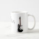 Item has an electric guitar leaning against a "wall" with music notes coming out of it, which wrap around the mug.