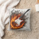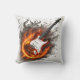 Guitar engulfed in vibrant flames and music notes throw pillow