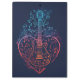 This clipboard design celebrates the love of music and guitar. It has a simplistic illustration of an electro guitar surrounded by a large neon heart and musical notes.