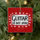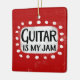 "Guitar Is My Jam" is a fun text design with a white accent shape surrounded by white whimsical textured dots.