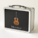 Black and White musical monogram lunch box with a unique guitar image. With white customizable lettering, you can add your own name. A great item for your child to enjoy their lunch at school or rehearsal.