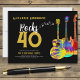 Cool rock n roll 40th birthday party black and gold budget invitation postcard with colorful funky guitars. Three cool watercolor guitar designs. An electric guitar with Fire flame pattern and white pick guard, a multicolored semi acoustic guitar and a psychedelic classic acoustic guitar art illustration with personalized black and gold modern cool typography. This easy to use template creates the perfect invitation to celebrate forty in rock n roll style and is ideal for a guitarist, musician and music lovers. Any guitar player will tell you that you can never have too many guitars. This cool modern musical instrument design celebrates the music energy of this wonderful musical instrument and is the perfect way to rock a forty birthday celebration. Original artwork by artist Catherine Sweetman