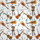 A jumble of guitars and black music notes is a fun design for musicians, music teachers and students.